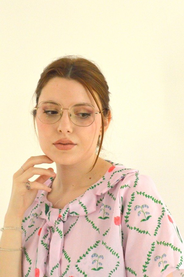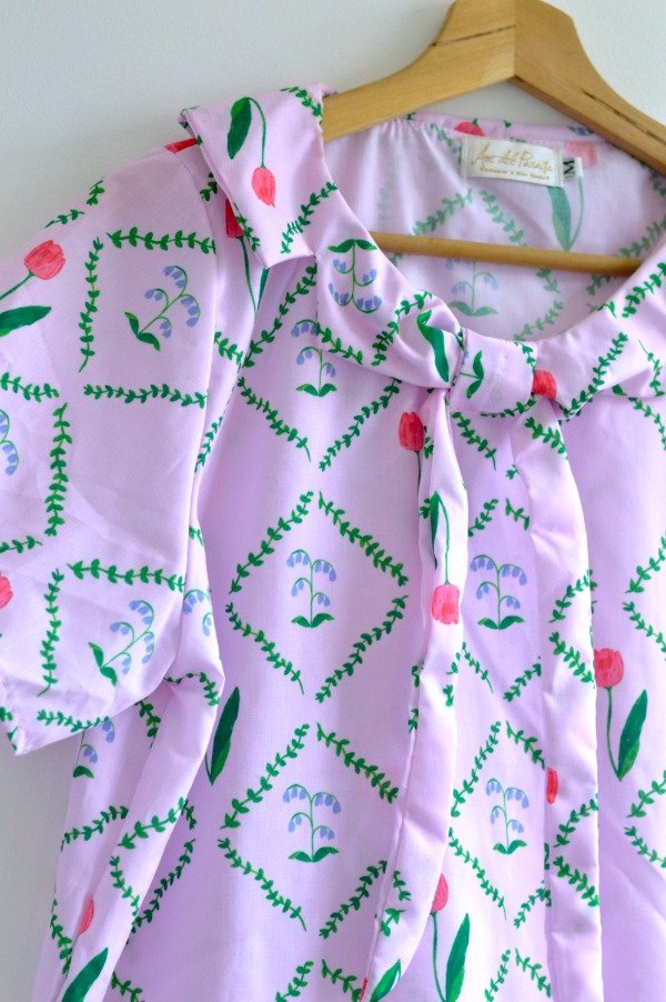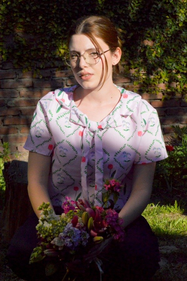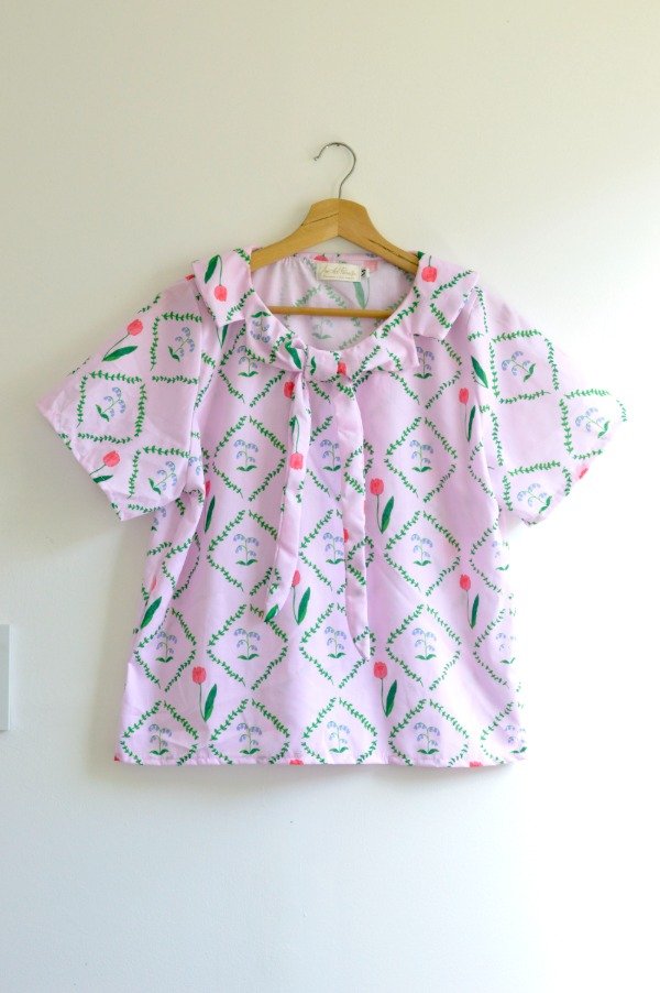 Esta blusa de estampa hecha a mano tiene un cuello unico que da la idea de moño pero de muy facil uso. No necesitas hacer ningun moño!