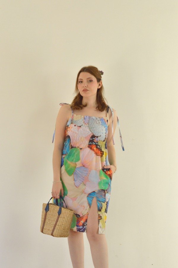 Nada mas veraniego y comodo que un vestido con el busto con nido de abeja, largo midi, abertura en un lateral y BOLSILLOS escondidos!