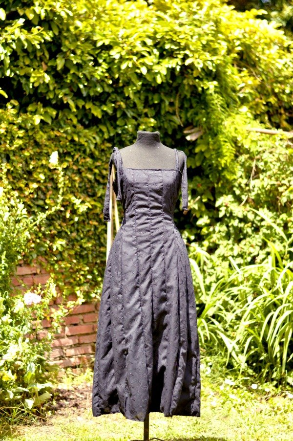 Cada vestido tiene 16 gajos, cada uno con sus pinzas rotadas y de base de corsetería. Es por eso que es ajuste al cuerpo es increible! Si sumamos que la parte de la falda es acampanada y acompaña tu cuerpo de una forma super cómoda, este vestido es un mil! Tiene breteles regulables, cintas en los laterales para ajustar mas aun la silueta y cierre en la espalda. El textil es broterie 20% algodón.