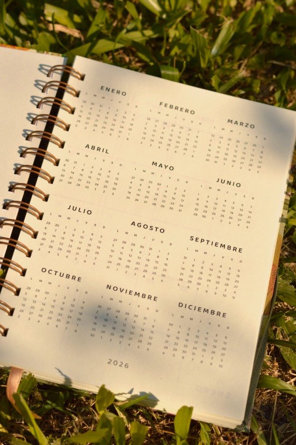 Este 2026 nos unimos con Patronus para traerte una agenda semanal hermosa, de papel que no daña la vista. Tiene semana a la vista, almanaque anual y mensual a principio de cada mes, hojas punteadas al final para que uses de anotador y sobre para guardar cosas importantes.